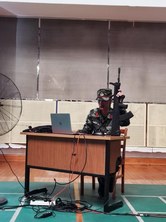 射击学理是研究射击的理论。两位主讲人结合自身部队射击经历,向大家介绍了射击学理主要包括武器、弹药、膛内弹道学、膛外弹道学、瞄准、弹道、射弹散布、命中公算、射击效果等内容,以92手枪、狙击步枪、95步枪和95-1式班用机枪为例,从枪的基本常识、主要构件、基本操作与使用以及故障排除方法等方面,让同学们了解了四种枪支的操作步骤和规范。讲解中教官示范“稳、紧、实、瞄、套、平、看”的技巧,教会大家在击发时做到“食指动、全身静”、“有意扣、无意响”的要领。