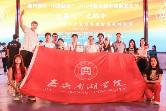 6月22日晚,2023第十二届中国掼牛争霸赛总决赛暨国际高校对抗赛在凌公塘主题公园中国斗牛馆开幕,嘉兴市政协副主席、校党委书记盛付祥参加开幕式并为获奖队员颁奖。
