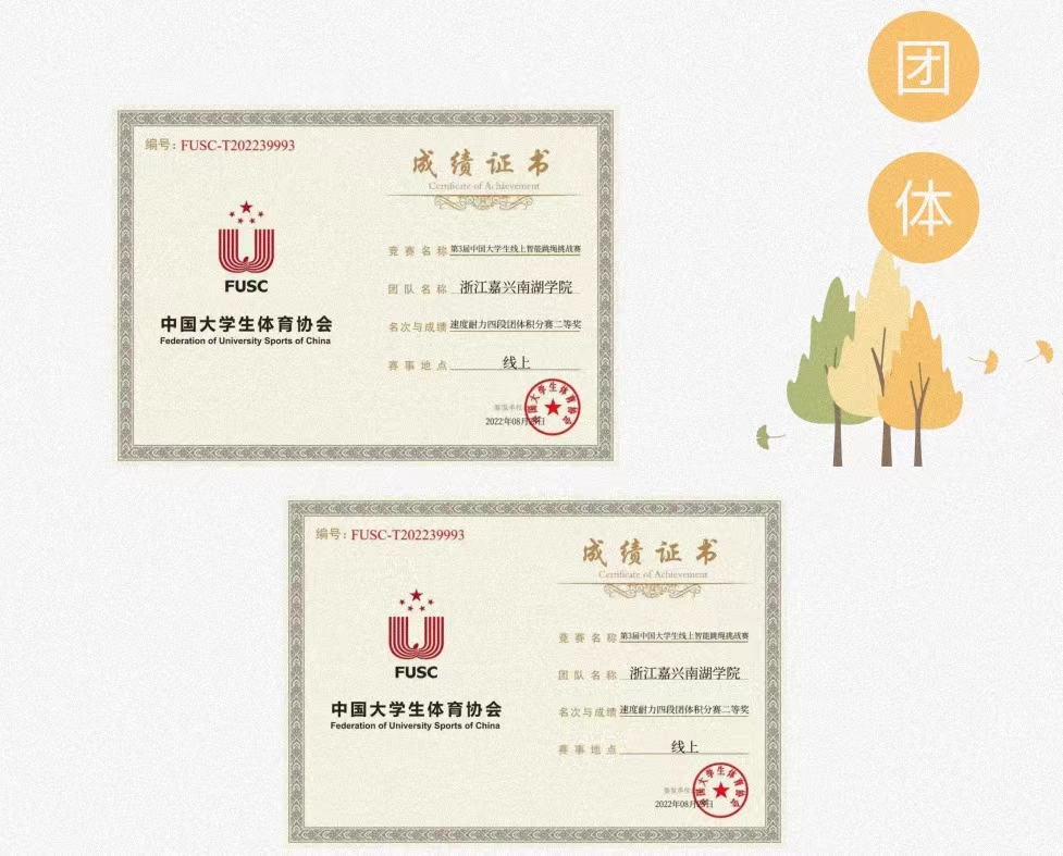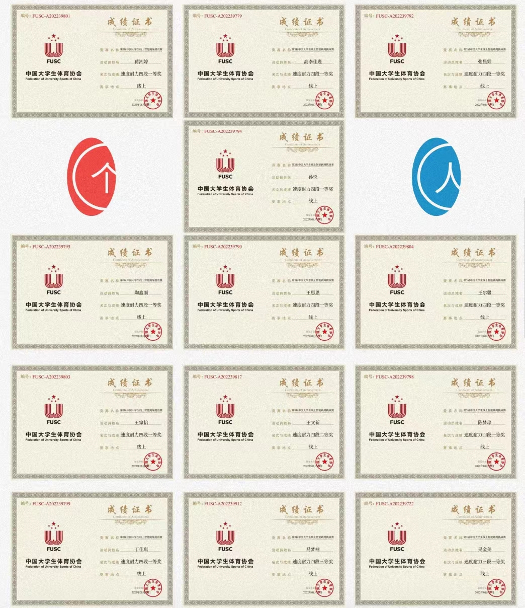 8月20日,第3届中国大学生线上智能跳绳挑战赛成功落下帷幕,best365体育官方网站跳绳队在陈浩、邢震宇老师指导下,经过32天持续不间断比赛,共获得速度耐力四段团体积分赛二等奖和耐力强心挑战团体积分赛二等奖;速度耐力四段⼀等奖11项,二等奖1项,三等奖1项。速度耐力三段⼀等奖1项,在四段项目中斩获全部奖项的1/3奖项,创了全国比赛中的获奖记录。